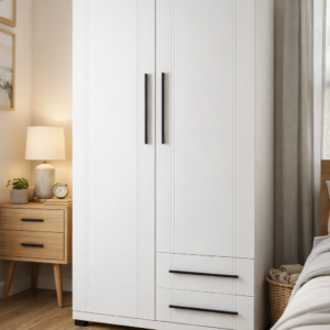 The Arden 2 Door Wardrobe offers a practical and modern storage solution for any bedroom. Finished in a clean white tone, it features two full-length doors that open to a spacious hanging area, ideal for clothing and everyday essentials.
