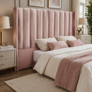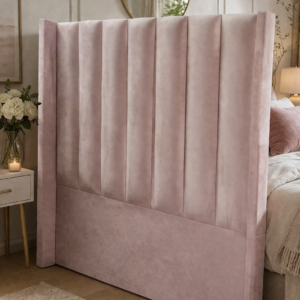 Fully padded and upholstered in a soft-touch fabric, the headboard offers both visual appeal and practical comfort for everyday use. The extended side wings add a subtle framed effect, making it a strong focal point behind the bed.