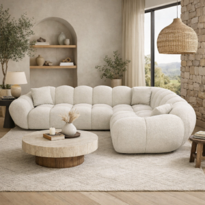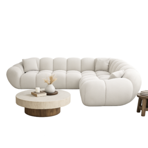 “Luna” reflects the soft, rounded, almost cloud-like shape of the sofa, inspired by calm, flowing forms. “Curve” highlights its signature sculpted design and seamless modular layout.