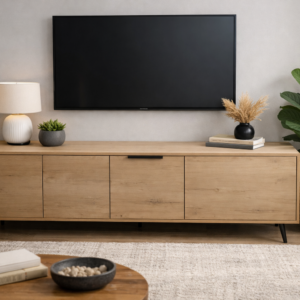 The Nordic Oak Media Console is a modern storage unit designed to bring both style and practicality into your living space. Crafted with a natural oak finish, it features a clean, seamless look with four spacious compartments for organized storage.