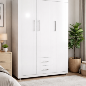 The Nova 3-Door Wardrobe is designed for practical everyday use with a clean, modern look that fits easily into any bedroom. It features three full-length doors for organized storage, along with two spacious lower drawers for smaller items.